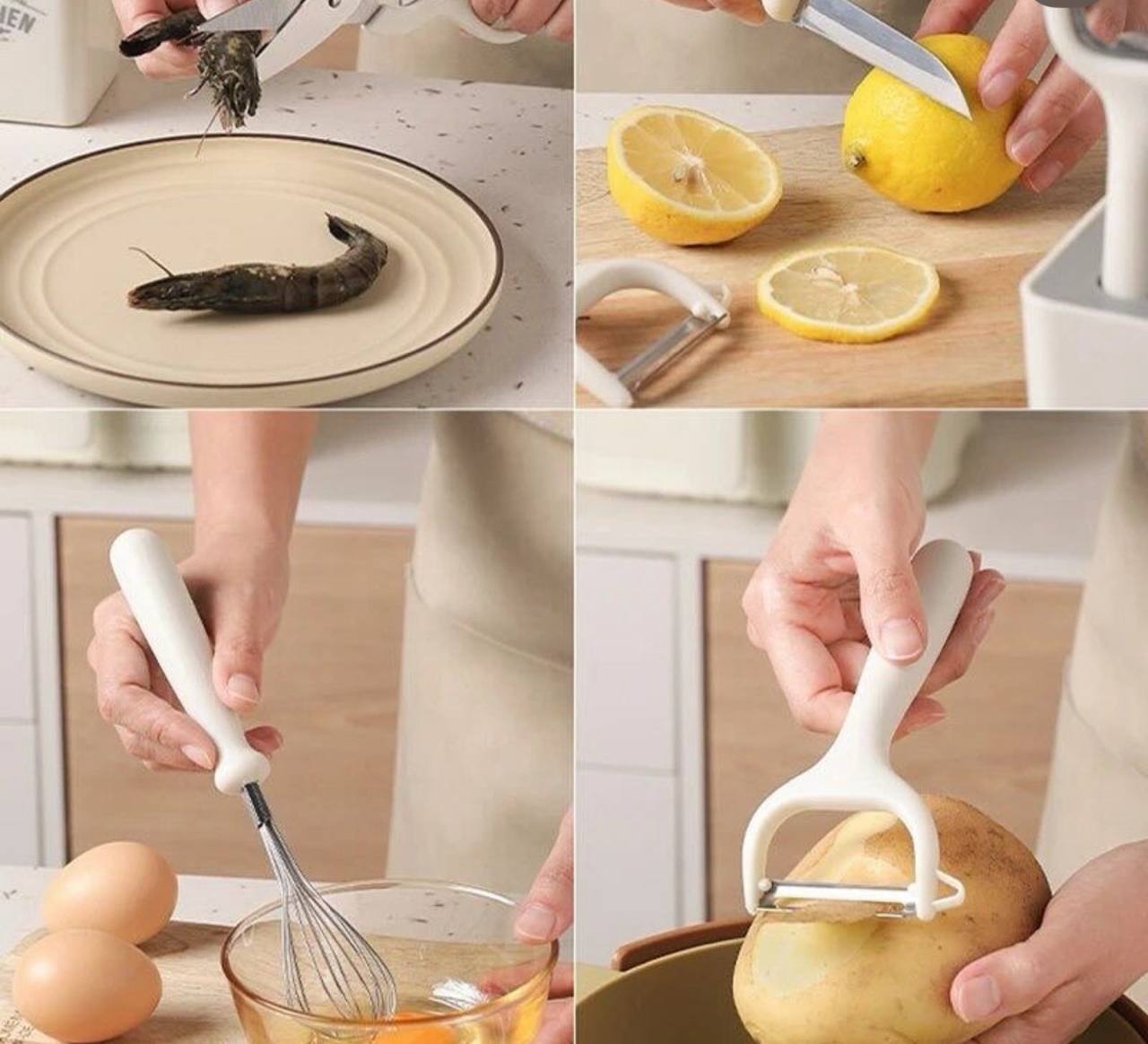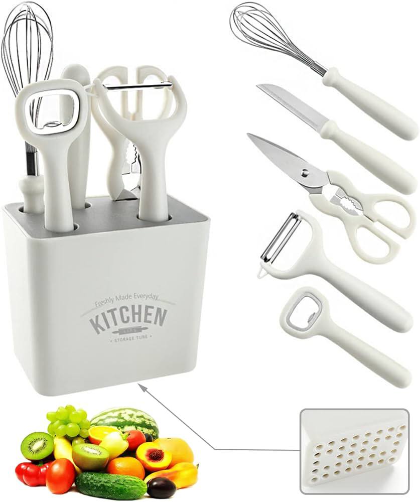 🧼 FÁCIL LIMPIEZA Y ALMACENAMIENTO Materiales que no retienen olores ni sabores. Todas las piezas cuentan con un orificio en el mango para colgarlas, manteniendo tu cocina siempre organizada y despejada.